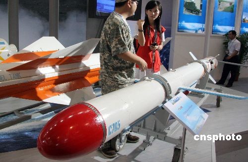 圖為由中國航天科工集團公司研制的C705導彈亮相珠海航展,這也是其首次公開露面。該導彈武器系統適合機載、艇載以及陸基機動車輛等多平臺裝載,用于打擊護衛艦及以上中型海上目標,具有尺寸小、重量輕、射程遠、威力大、命中精度高、抗干擾能力強等特點。中新社發 孫自法 攝