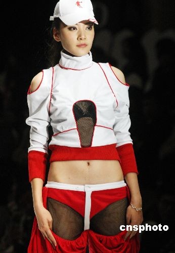 11月11日,第三屆中國運動裝備設(shè)計大賽在中國國際時裝周2009春夏系列發(fā)布上舉行。圖為模特展示第三屆中國運動裝備設(shè)計大賽作品。中新社發(fā) 錢興強(qiáng) 攝