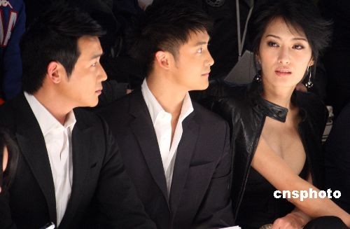 圖為陸毅、田亮、孟廣美等出席時(shí)裝秀。