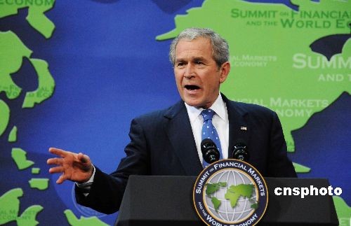 峰會東道主、美國總統(tǒng)布什在剛剛閉幕的二十國集團金融峰會后舉行記者招待會,介紹了本次峰會的成果,他認為本次峰會取得了成效。圖為布什在記者招待會上講話。中新社發(fā) 邱江波 攝