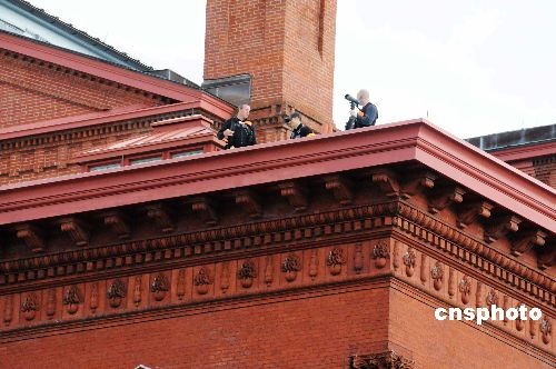 二十國集團領導人金融市場和世界經濟峰會15日下午在華盛頓閉幕。本社記者從峰會現場看到,峰會的保安極為嚴密,不僅僅臨近國家建筑博物館的五個街區全部封鎖,連會場附近的所有屋頂都布滿了荷槍實彈的特警。圖為建筑博物館上的特警。中新社發 邱江波 攝