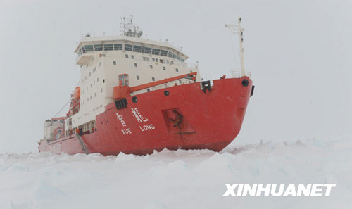由于南極大陸周圍多年未化的“老冰”和剛剛結(jié)成的“新冰”混合一起,堵死了“雪龍”號(hào)前進(jìn)的航線,25日晚6時(shí),“雪龍”號(hào)有關(guān)負(fù)責(zé)人決定由船上隊(duì)員組成探冰隊(duì)下船察看冰情。