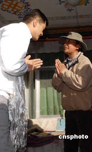 11月28日下午,王菲、李亞鵬來到拉薩城關區當巴居委會,看望一歲的唇腭裂患兒小央金,并為小央金送去慰問金和禮物。首次做客藏家的王菲、李亞鵬夫婦顯得很愉快。中新社發 龍昊 攝