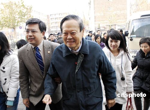 11月28日,著名物理學家楊振寧先生攜夫人翁帆做客天津大學北洋大講堂,進行題為《物理學的誘惑》演講。現場涌進數千名師生,連講臺上都坐了30多名學生。中新社發 高中 攝
