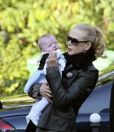 巴黎時間12月2日,妮可·基德曼正在當地宣傳新片《澳大利亞》,空閑時間妮可和老公凱斯·厄本攜愛女前往巴黎皇宮國家美術館。妮可把寶貝女兒緊緊摟在懷中視若珍寶,怕女兒著涼,還特地用外套蓋在她身上盡顯母愛,不時努嘴逗女兒,喜愛之情溢于言表。