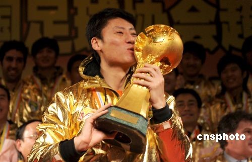 12月4日,2008中國足球協會超級聯賽頒獎典禮在山東濟南舉行。冠軍球隊山東魯能泰山全體將士登臺舉起火神杯。