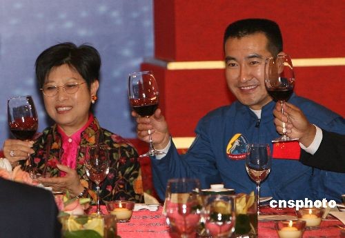 十二月五日晚,香港特區政府在香港會議展覽中心舉行晚宴,歡迎“神舟七號”載人航天飛行代表團一行。中新社發 武仲林 攝