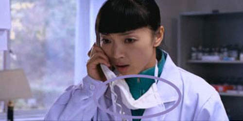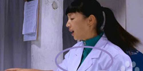 實(shí)習(xí)醫(yī)生打電話問主治醫(yī)生何時(shí)來醫(yī)院,脖子上掛著口罩。打完電話口罩突然不見了。《超強(qiáng)臺(tái)風(fēng)》攜帶超強(qiáng)穿幫襲擊電影市場(chǎng)。
