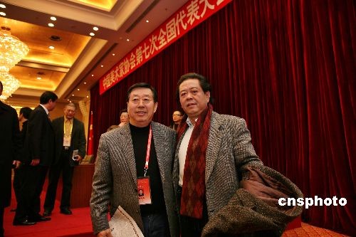 新當選的中國美協(xié)主席劉大為(左)和新當選的中國美協(xié)中國美協(xié)秘書長劉健。