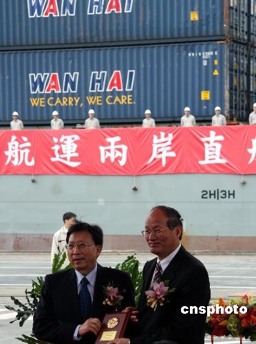 12月15日上午,臺灣行政當局負責人劉兆玄率同“陸委會主委”賴幸媛、海基會副董事長高孔廉、“交通部次長”游芳來與臺灣知名航商負責人共同出席“兩岸海運直航基隆港首航儀式”。