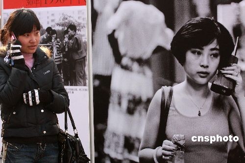 圖為“民生記憶30年”再現改革開放30年來市民手機消費的變化,完美演繹“手機改革史”。中新社發 鄭雄增 攝