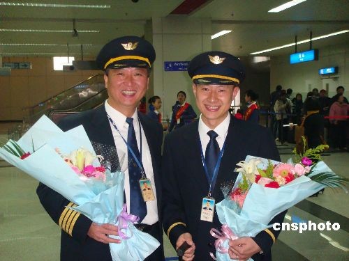 圖:福州空中直航臺北機組人員首航歸來