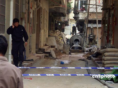 12月19日下午4時15分,廣州市白云區(qū)夏茅村沙園坊因路面塌陷導(dǎo)致兩棟房屋下沉6米,其中一棟倒塌,周圍10余棟房屋傾斜或出現(xiàn)裂縫。目前,有關(guān)部門對以事故現(xiàn)場為中心、周圍約100米為半徑的區(qū)域進行封鎖,1000多名居民被疏散出來。中新社發(fā) 劉君鳳 劉蛟 攝