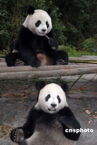 2008年12月,圓圓很貪吃 ,團團:“我的那份竹子呢?”。中新社發 羅小韻 攝