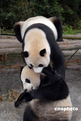 2008年12月,圓圓撓癢癢,團團:“哎呀,受不了啦”。