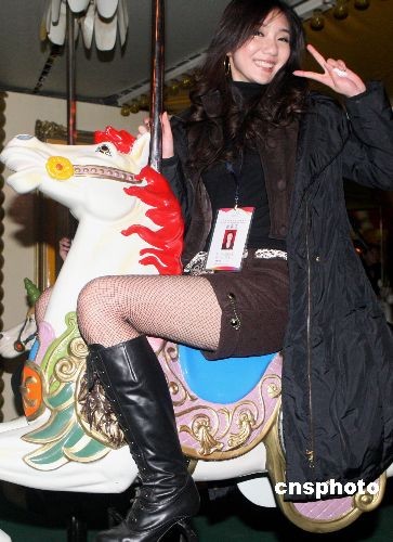 12月23日,正在北京參加2008世界亞裔小姐大賽中國區(qū)總決賽的佳麗在嘉年華游樂園游覽拍照,各種游樂項目吸引佳麗。中新社發(fā) 錢興強 攝