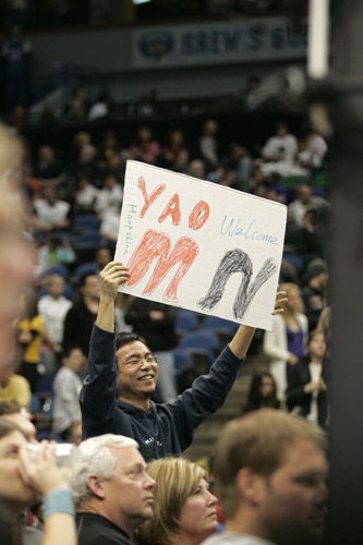 姚易大戰自然吸引了眾多華人球迷的關注,籃網的主場的球迷打出歡迎姚明的標語。