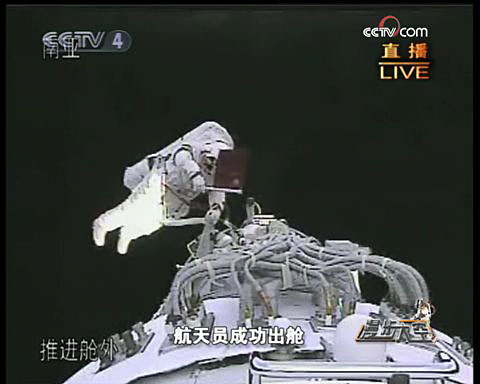 NO 2.中國太空行走第一步:2008年9月25日,中國航天員翟志剛、劉伯明、景海鵬搭乘“神舟七號”載人飛船,在酒泉衛(wèi)星發(fā)射中心通過長征二號F型火箭發(fā)射升空。9月27日16:39,身穿國產(chǎn)“飛天”艙外航天服的翟志剛打開艙門,執(zhí)行我國首次太空出艙任務(wù),成功取回放置在艙外的試驗品。9月28日傍晚,神舟七號返回艙在內(nèi)蒙古主著陸場成功著陸,中國第三次載人航天任務(wù)圓滿完成。