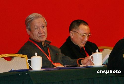 著名導演謝飛(左)、中影集團董事長韓三平在主席臺就坐。 中新社發(fā) 黃寧 攝