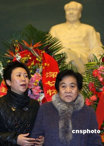 12月26日毛澤東115周年誕辰日,70歲的原中共中央政治局候補(bǔ)委員、國(guó)務(wù)院副總理吳桂賢(右)到位于北京天安門(mén)廣場(chǎng)的“毛主席紀(jì)念堂”敬獻(xiàn)鮮花。