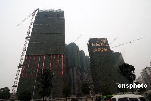 發(fā)生建筑施工升降機掛籃墜落事故的長沙市井灣子韶山南路643號湖南東方紅建設集團上海城19棟項目部外景。中新社發(fā) 郭國權(quán) 攝