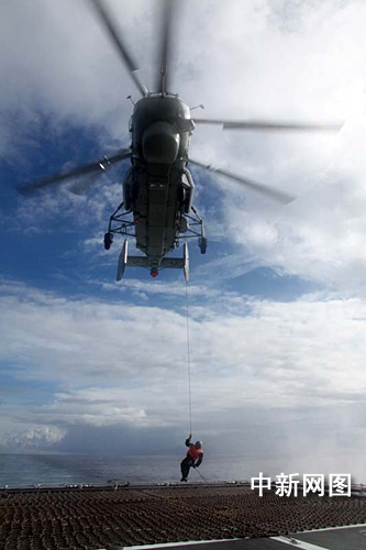 中新網(wǎng)“海口”艦12月28日電(記者 孫自法) 12月28日,中國(guó)海軍遠(yuǎn)洋護(hù)航艦艇編隊(duì)“海口”號(hào)導(dǎo)彈驅(qū)逐艦首次組織隨艦特戰(zhàn)隊(duì)員與艦載直升機(jī)進(jìn)行海上艦機(jī)協(xié)同滑降訓(xùn)練。