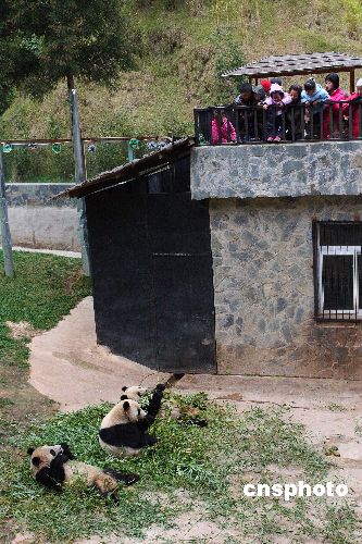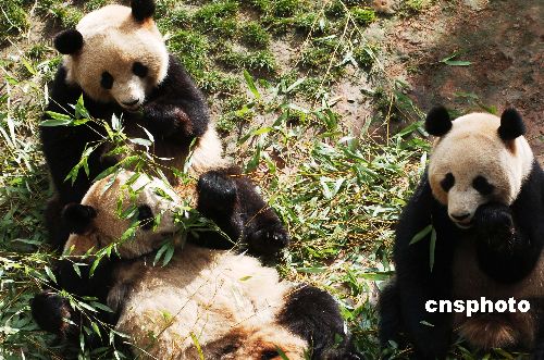 三只來自地震災區(qū)四川臥龍的熊貓寶寶思嘉、美茜、芊芊,經(jīng)過云南野生動物園半年的精心照料,已適應當?shù)氐臍夂颦h(huán)境,成長健康,與園內(nèi)原有的兩只大熊貓歡歡和南南共同迎接新年的到來。