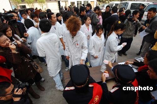 一月七日上午,廣州鐵道部門為番禺一家企業(yè)為外來工提供送春運(yùn)返鄉(xiāng)車票上門服務(wù)。廣鐵集團(tuán)計(jì)劃在四天時(shí)間為幾十家企業(yè)上門送票十萬(wàn)多張。中新社發(fā) 柯小軍 攝