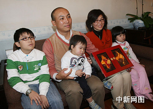 圖為胡祖杰一家五口向記者講述當時情形,并展示習近平副主席贈送的茶具。
