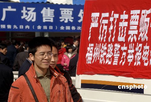 福州火車站旅客微笑的看著前方。中新社發 王東明 攝