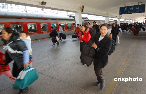 廣州火車站人潮初現(xiàn),進(jìn)站的返鄉(xiāng)旅客十分興奮。中新社發(fā) 柯小軍 攝