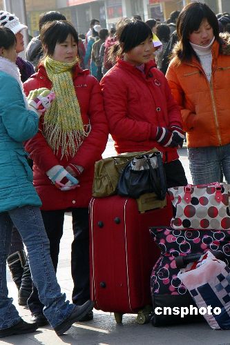 幾位“打工妹”結伴在鄭州火車站準備一起返鄉過年,但“一票難求”愁壞了她們,顯得很沮喪。