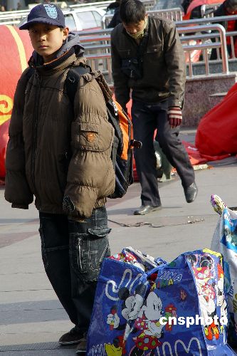 圖為鄭州火車站廣場前一位不足16歲的“小小農民工”。中新社發 李志全 攝