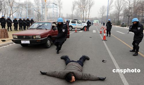 維和防暴隊員進行定點查車訓練。中新社發 由永懷 攝