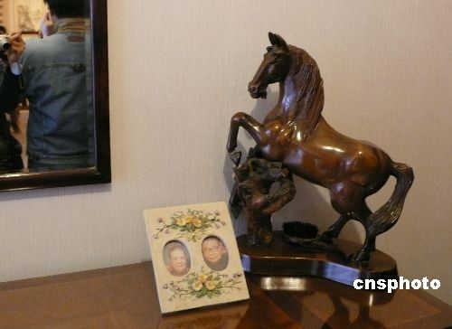 圖為七海寓所門(mén)廳內(nèi)擺放的蔣經(jīng)國(guó)夫婦相框。中新社發(fā) 路梅 攝