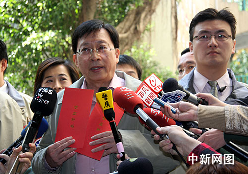 1月18日上午,備受全臺(tái)和外界關(guān)注的消費(fèi)券開(kāi)始在臺(tái)灣各發(fā)放所發(fā)放。圖為今天上午11時(shí),臺(tái)灣行政部門負(fù)責(zé)人劉兆玄來(lái)到設(shè)于臺(tái)北市金華中學(xué)的消費(fèi)券發(fā)放所領(lǐng)取消費(fèi)券。劉兆玄隨后發(fā)表講話呼吁臺(tái)灣民眾積極使用消費(fèi)券擴(kuò)大消費(fèi),促進(jìn)內(nèi)需。陳立宇 攝