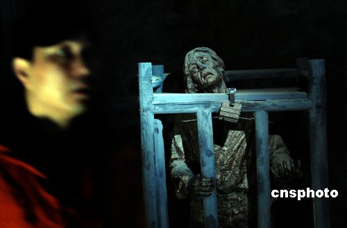 一月中旬,拉薩布達(dá)拉宮雪城監(jiān)獄展示著根據(jù)舊西藏法典而對農(nóng)奴和奴隸們施加的各種酷刑,包括挖眼、抽筋、割舌、砍手、剁腳,從高山推下摔死,用牛皮包身投入水中淹死,或者立即殺死等。中新社發(fā) 廖攀 攝