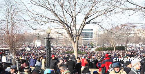 美國(guó)數(shù)十萬(wàn)民眾冒著嚴(yán)寒到現(xiàn)場(chǎng)見(jiàn)證這一歷史性時(shí)刻。中新社發(fā) 李靜 攝