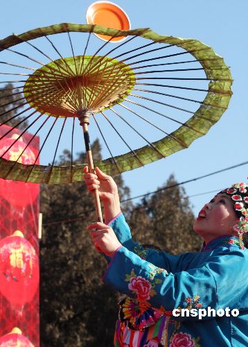 地壇春節(jié)廟會雜耍表演吸引游客。中新社發(fā) 錢興強 攝