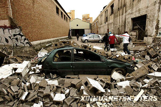 2月2日,在西班牙南部的馬拉加,人們從被龍卷風毀壞的一輛汽車旁走過。