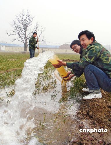 河南省溫縣南張羌鎮大學生“村官”幫扶馬莊村村民澆灌小麥。春節后上班以來,該縣250余名大學生“村官”組成青年抗旱突擊隊,幫扶全縣困難群眾及未返鄉人員家屬抗旱澆麥,解決他們的后顧之憂。