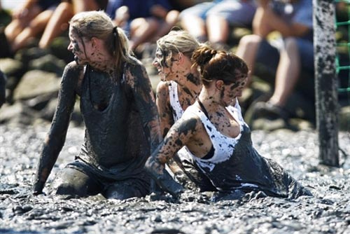 泥地足球:德國北部海邊小鎮Brunsbuettel的泥灘上進行的泥地足球賽。男女“球員”混合在一起,泥地中盡情撒野。