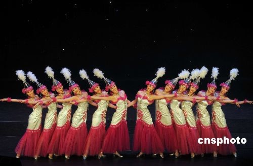 圖為由中國中央民族歌舞團表演的哈薩克族舞蹈《可愛的玫瑰花》。中新社發 張煒 攝