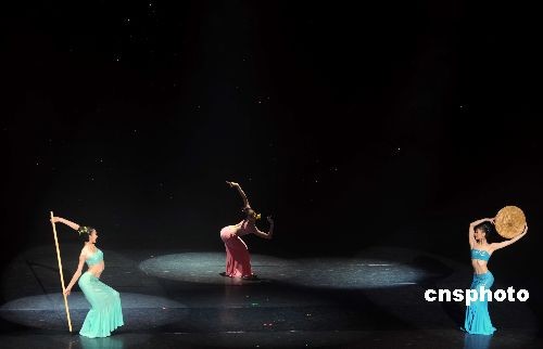 圖為俏皮詼諧的傣族三人舞“邵多麗”,贏得觀眾喝彩與掌聲。中新社發 張煒 攝