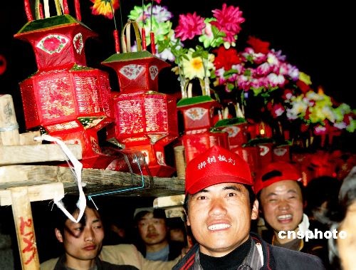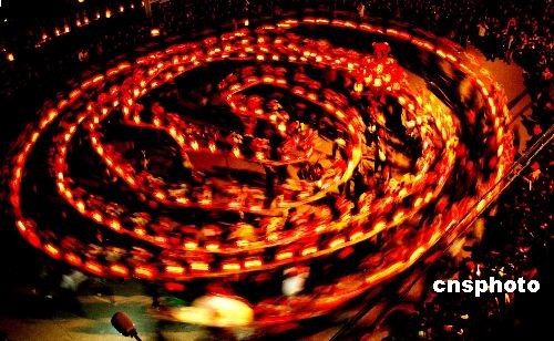 2月7日至9日,江西省玉山縣樟村鎮上萬農民舞動著7條長達400米板燈(又稱橋燈)長龍,喜鬧元宵。據悉,江西省玉山縣樟村鎮板燈始于唐朝,興于明清,尤以清朝康熙、乾隆為最。板燈以其燈型種類多,觀賞性強著稱,被譽為江西省唯一一個非物質文化遺產的民間板燈文化。 中新社發 卓忠偉 攝