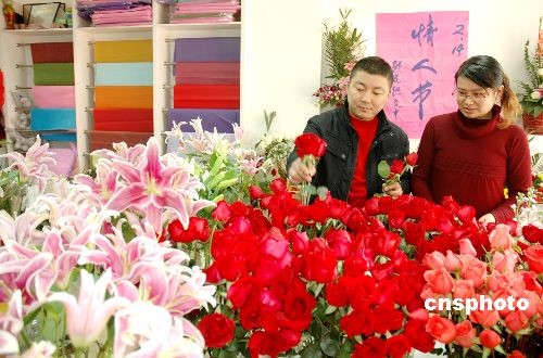 2月11日,隨著“情人節”來臨,安徽省巢湖市各商家搶占節日商機。琳瑯滿目的鮮花、巧克力、情侶飾品成為情人節的熱銷品,整個巢城一片濃濃的洋節氣氛。中新社發 驕陽 攝