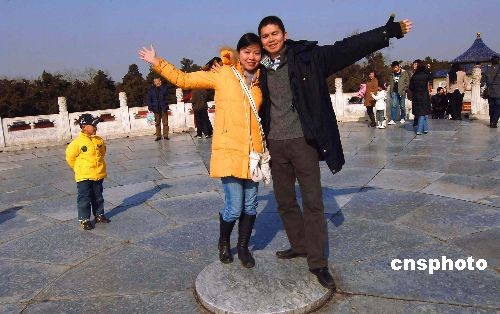2月13日,情侶們紛紛來(lái)到北京天壇圜丘,在過(guò)去皇帝祭祀天地的地方祈福。中新社發(fā) 鄒憲 攝