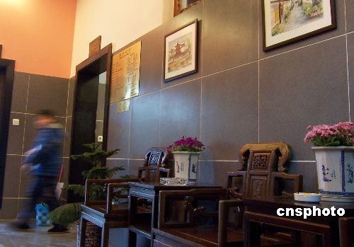 南京夫子廟四星級豪華公廁廳堂擺放著仿紅木太師椅。中新社發 王啟明 攝