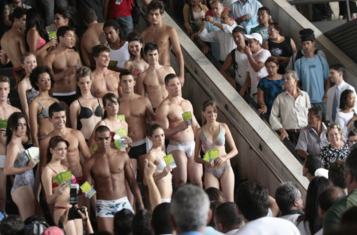 巴西利亞的公交車站,模特身著性感內(nèi)衣慶祝內(nèi)衣節(jié)開幕。
