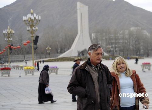 圖:外國(guó)游客拉薩感受藏歷新年